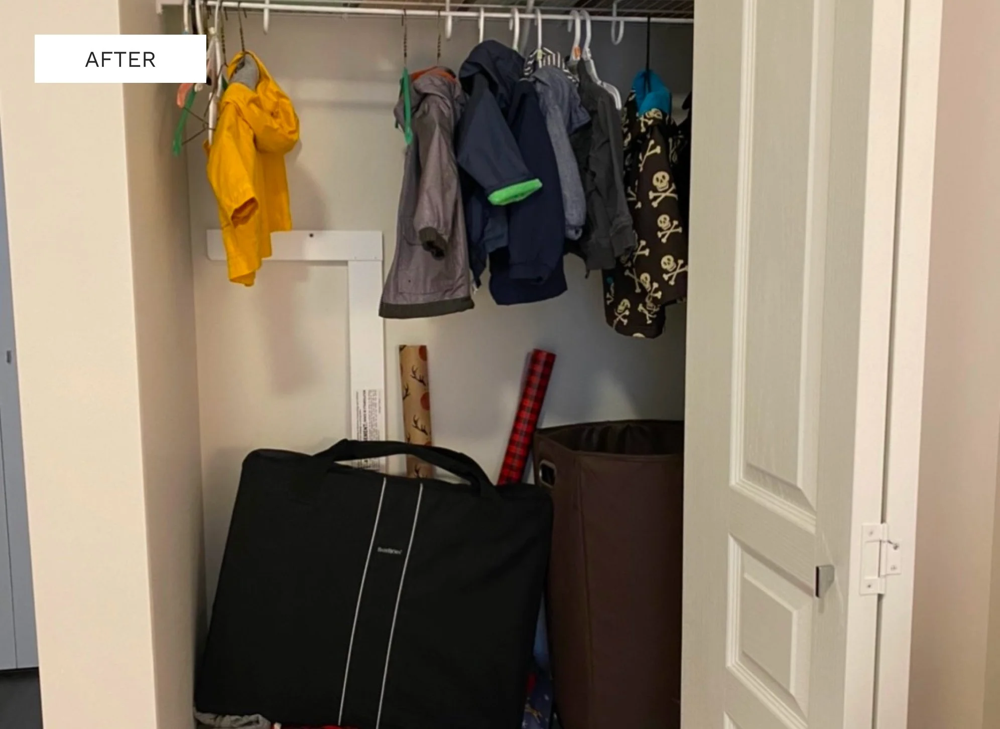 This busy new mom was overrun with gifts from others, didn’t have a system in place to store baby clothing that her baby was quickly growing out of and just felt overwhelmed by the state of their closet. Karissa shopped for storage solutions for this client, keeping her style top of mind. Once the project was finished the client felt a weight lifted off their shoulders and was thrilled with how she felt every time she had a spot to put outgrown clothing in, and felt relieved that going into the closet was no longer a challenge, but a pleasure.